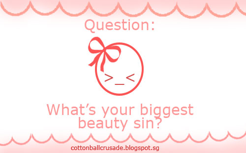 My biggest beauty sin is.....forgetting to wash my sponges and brushes! T___T I know I know~~ Bad! Big no-no!! It seems like such a small, easy thing to do, keeping your makeup applicators clean so you don't further pollute your skin.. But it's one of those things that always slips my mind.... Theoretically, I should be washing them about once a week but I usually end up using the sponge/brush for almost a month before I remember to wash them! ~~~~( >_<)